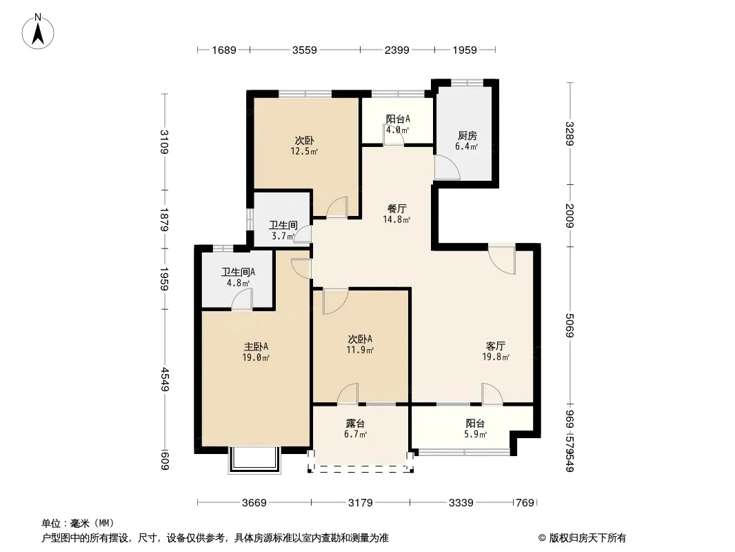 户型齐全,主打南北通透,客厅朝南,卧室朝南三居