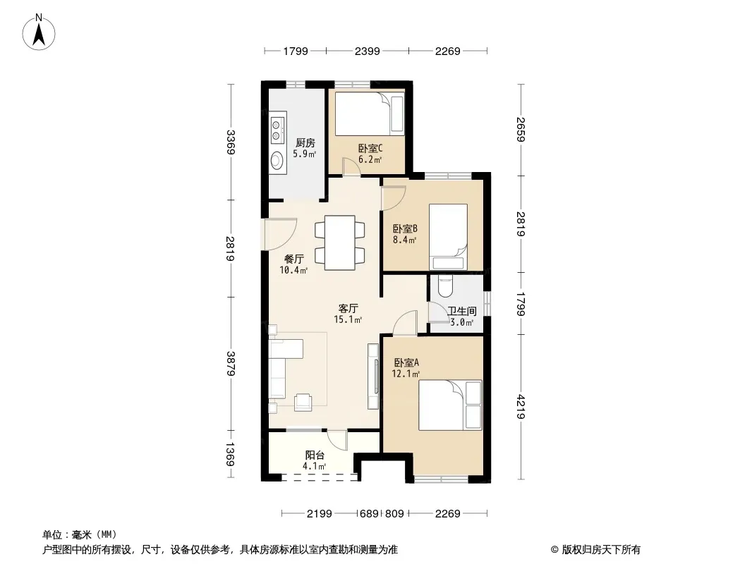 户型齐全,主打南北通透,客厅朝南,卧室朝南三居