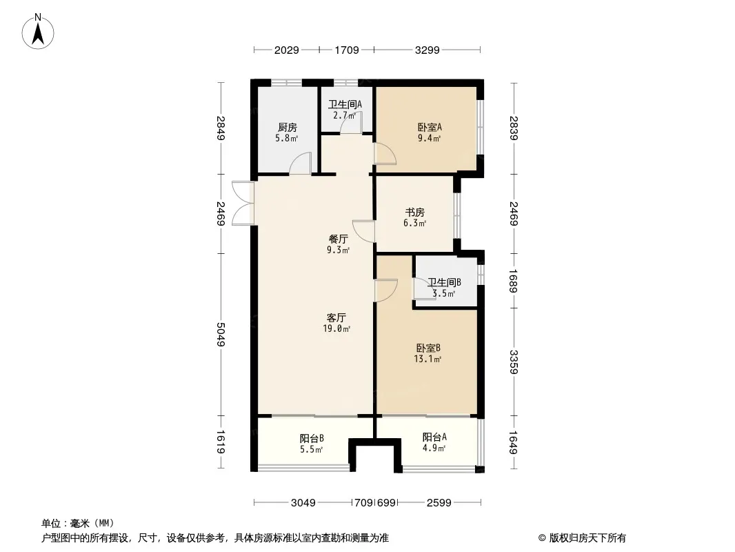 户型齐全,主打南北通透,全明格局三居