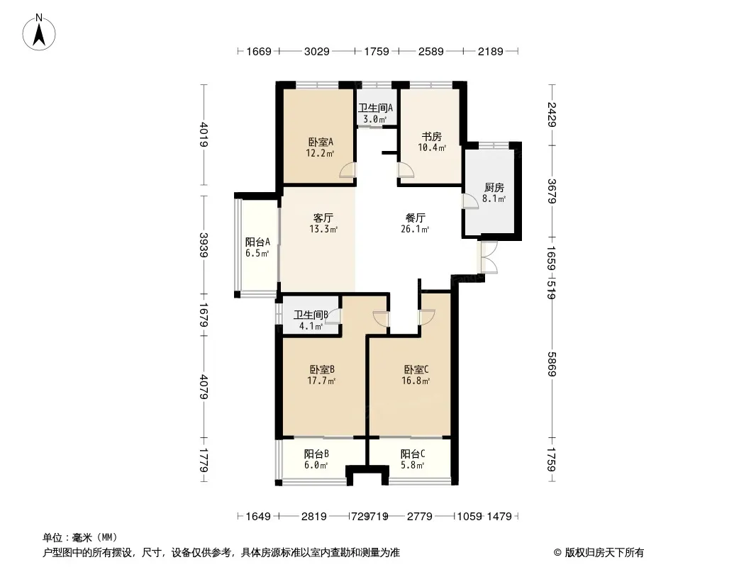 户型齐全,主打南北通透,全明格局三居