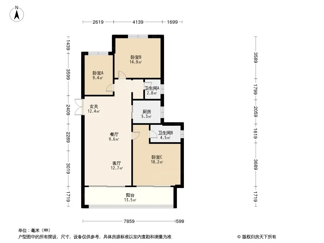 户型齐全,主打南北通透,全明格局三居