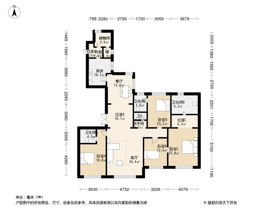 户型齐全,主打独立衣帽间,客厅朝南五居