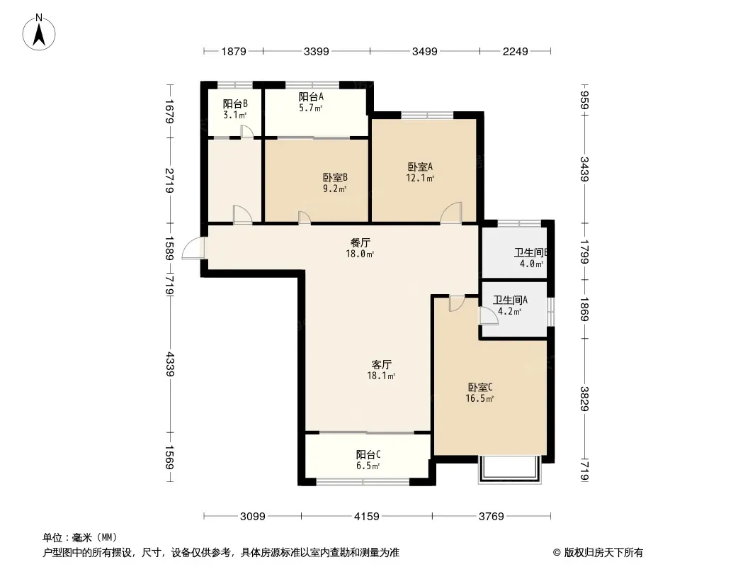 户型齐全,主打南北通透,全明格局三居