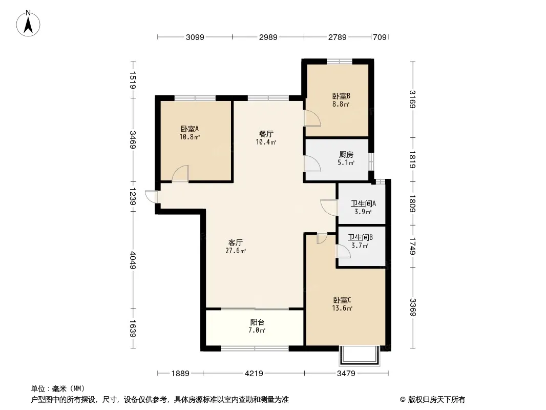 户型齐全,主打南北通透,全明格局三居