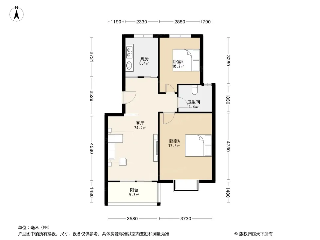 户型齐全,主打户型方正,明卫,明厨,客厅朝南,主卧朝南三居