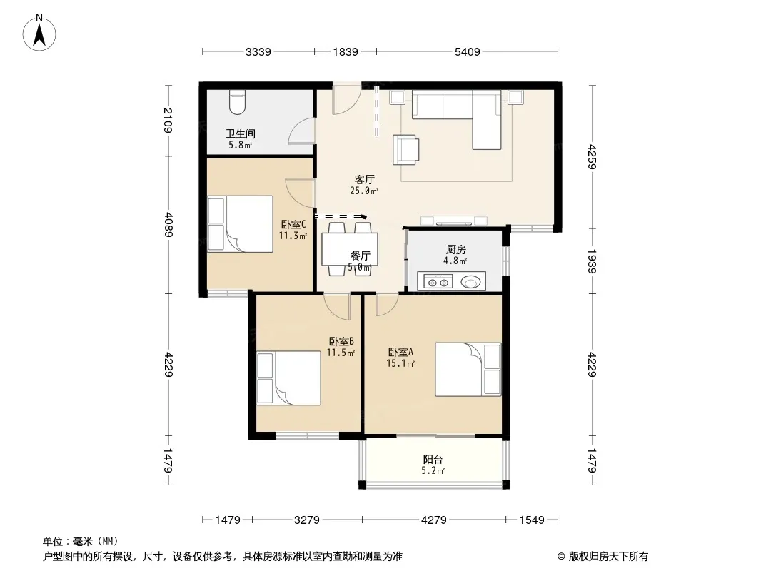 户型齐全,主打明厨,客厅朝南,主卧朝南三居