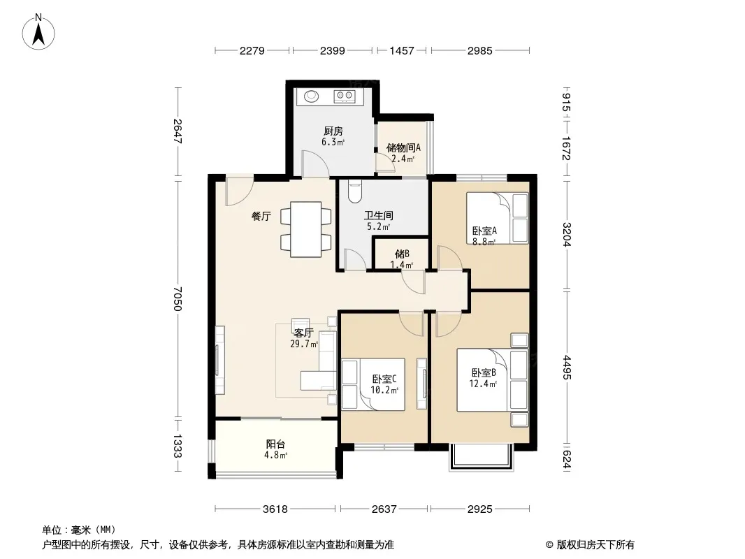户型齐全,主打明卫,双卧朝南三居
