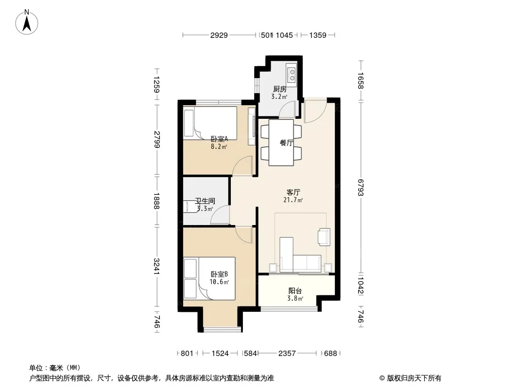 户型齐全,主打明卫,双卧朝南三居