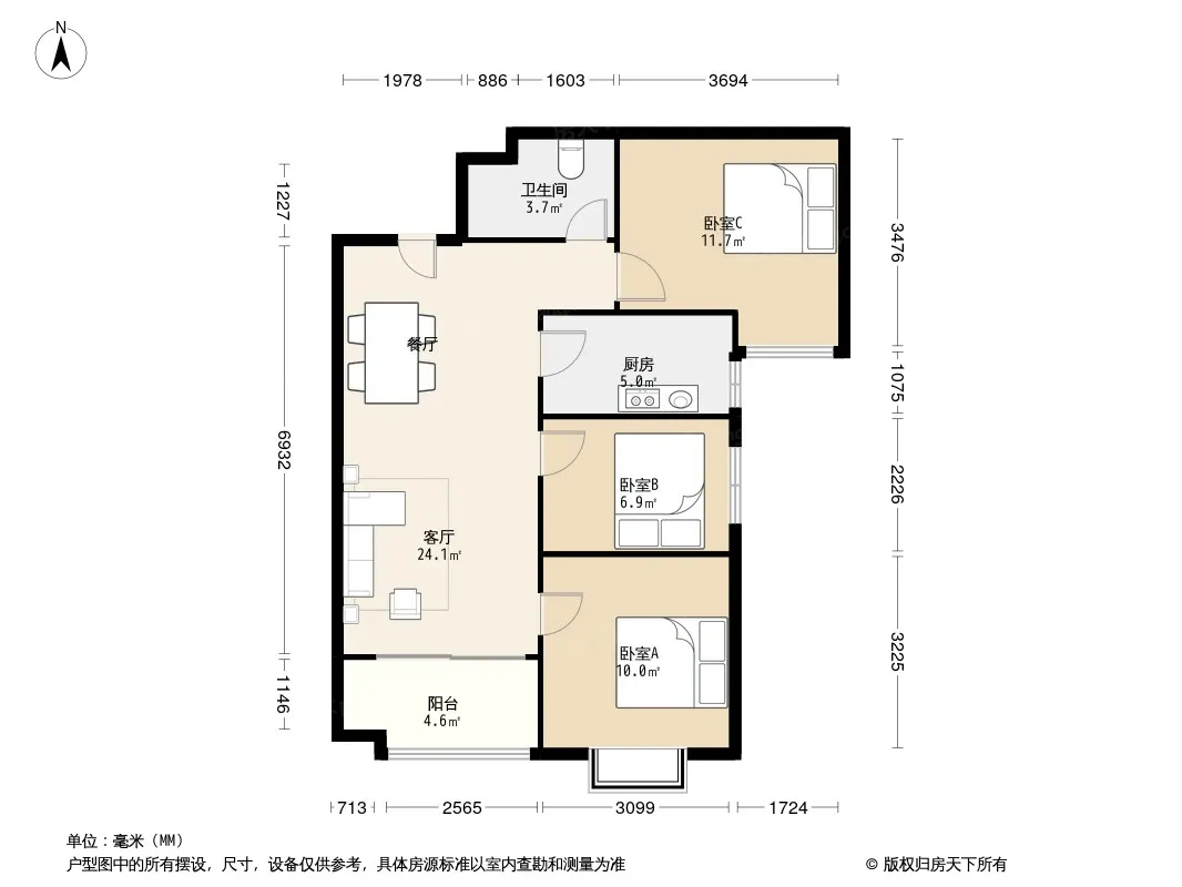 户型齐全,主打明卫,双卧朝南三居