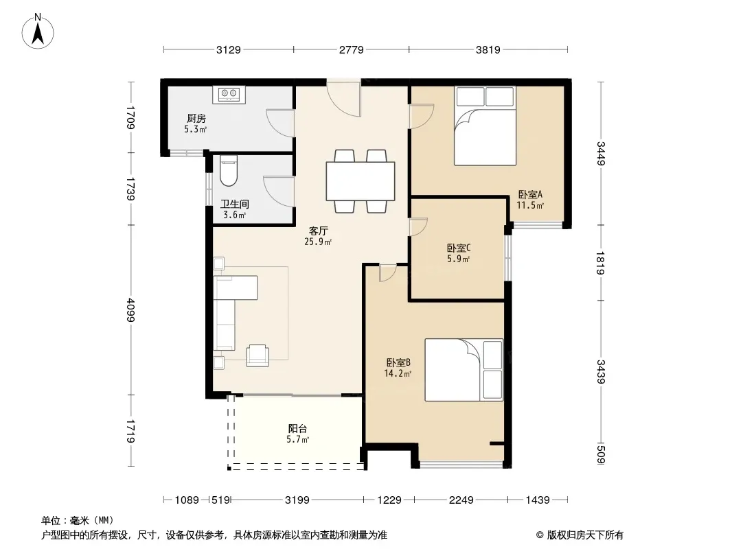 户型齐全,主打明卫,明厨,双阳台三居