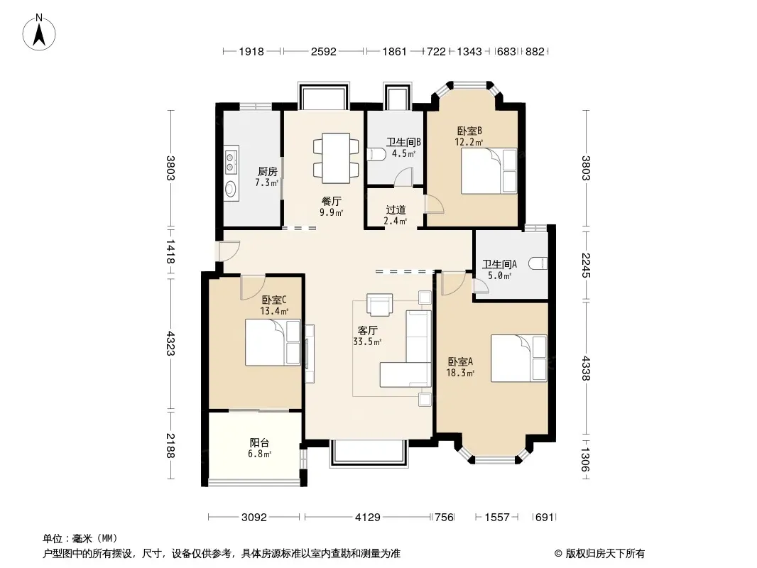 *获取完整户型报告,同时会有免费语音讲解服务