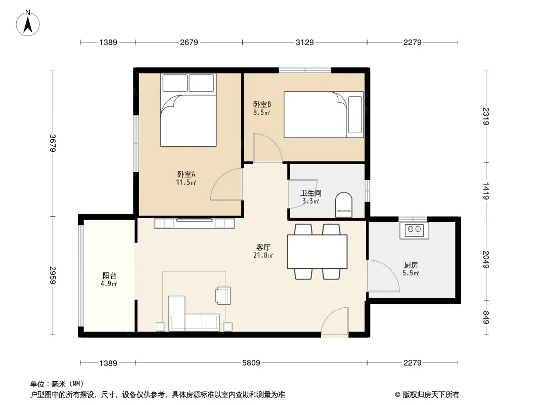 户型齐全,主打客厅朝南,L型厨房二居