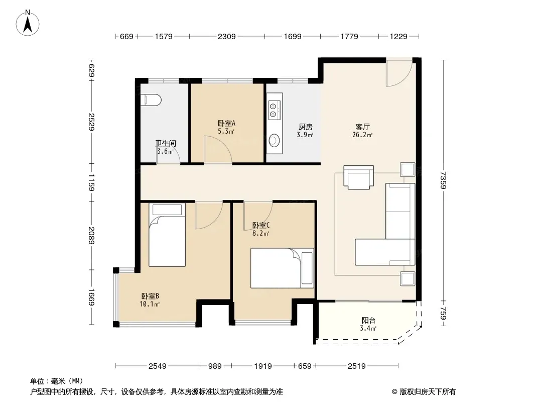 *获取完整户型报告,同时会有免费语音讲解服务