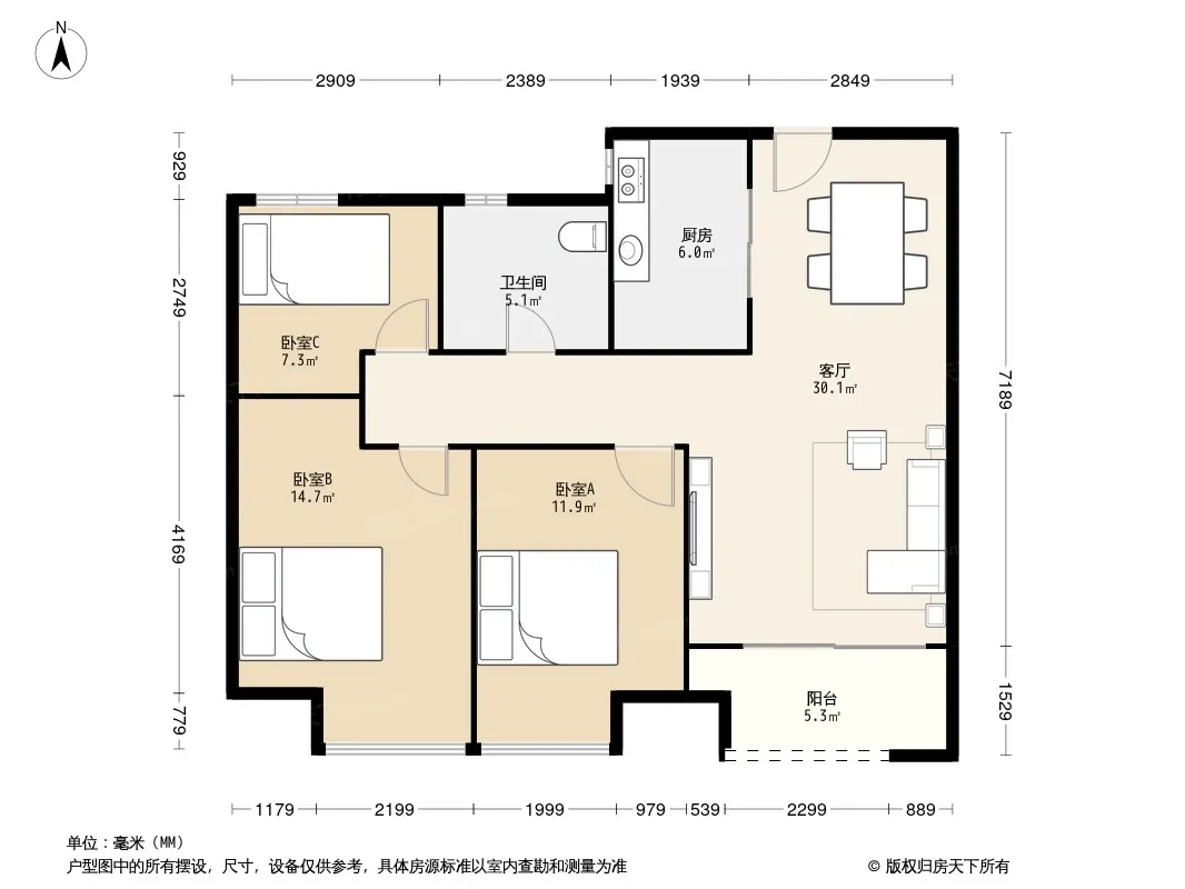 户型齐全,主打南北通透,全明格局,户型方正三居