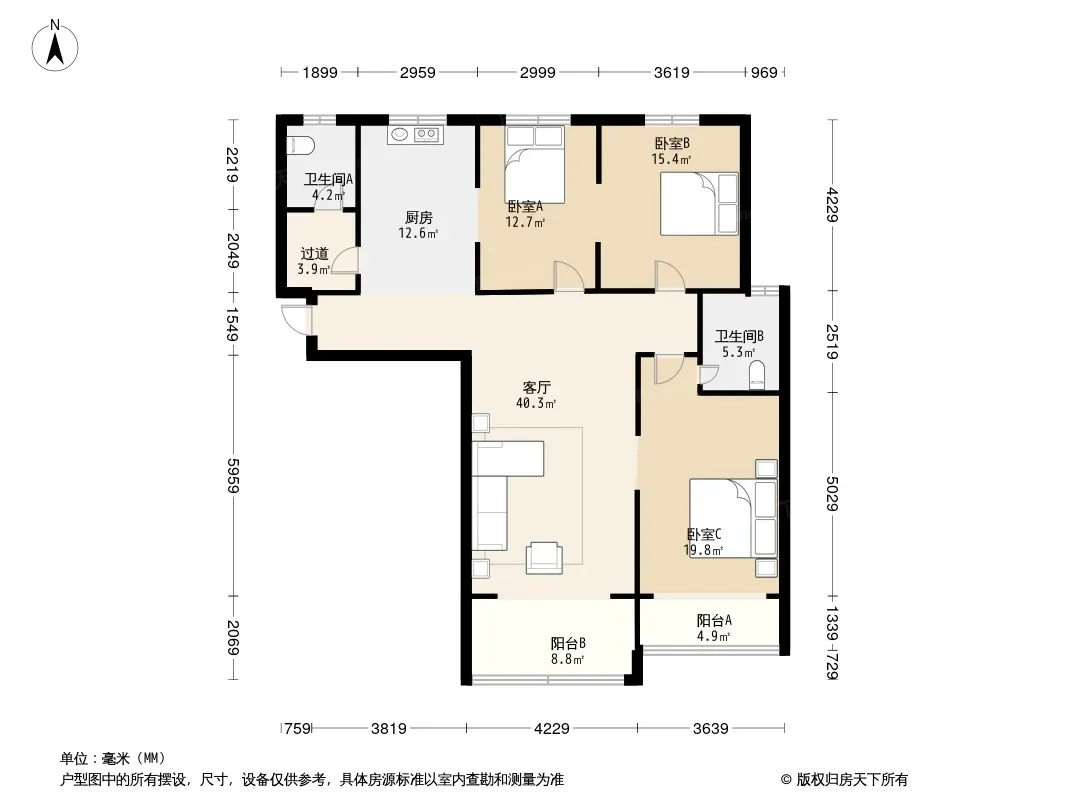 户型齐全,主打户型方正,明厨,明卫三居