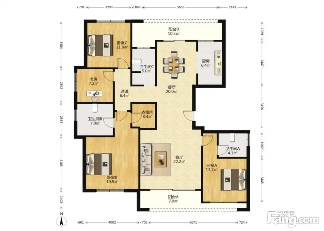 户型齐全,主打南北通透,主卧带卫,户型方正,客厅朝南,带衣帽间,全明格局,干湿分离四居