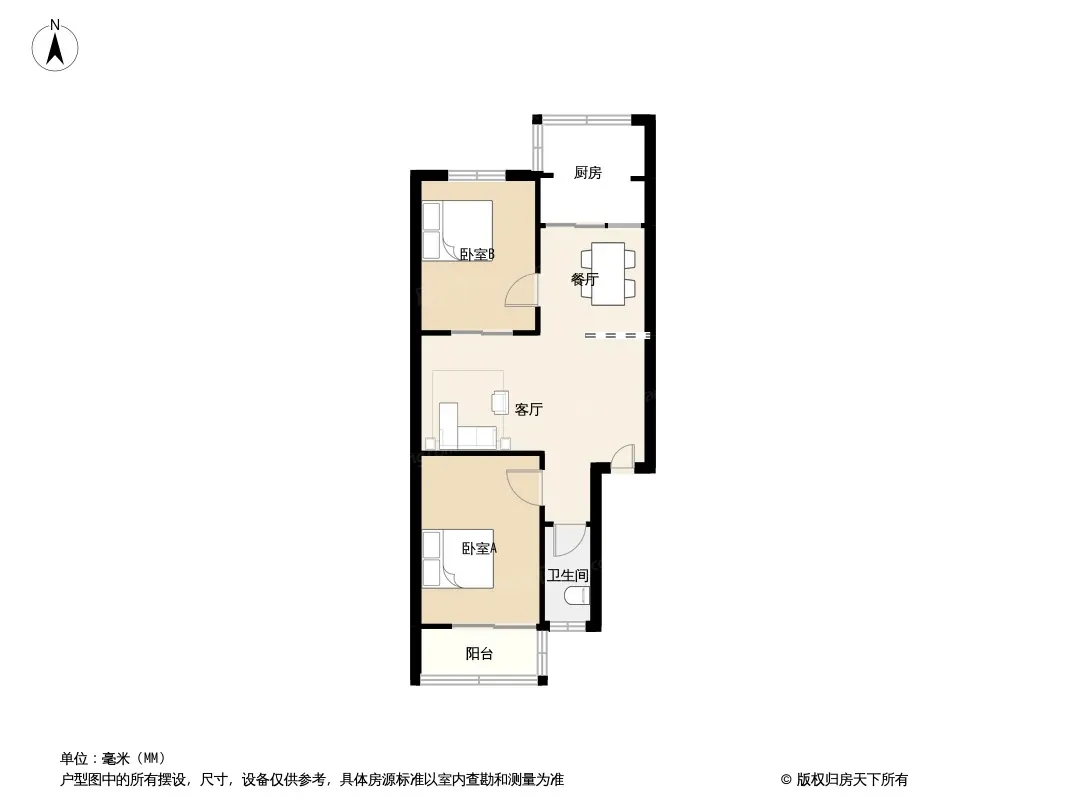 户型齐全,主打明厨,客厅朝南,双卧朝南,主卧朝南二居