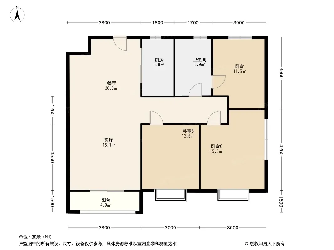 户型齐全,主打南北通透,全明格局,主卧带卫,L型厨房三居