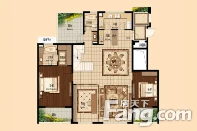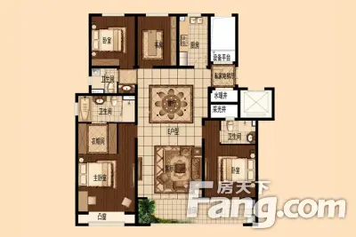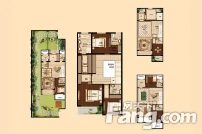 户型齐全,主打南北通透,全明格局,客厅朝南,主卧套间,中西双厨,独立庭院四居