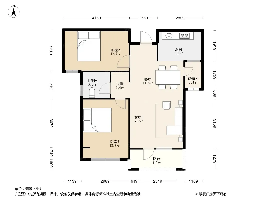 户型齐全,主打南北通透,全明格局,户型方正,采光充足三居