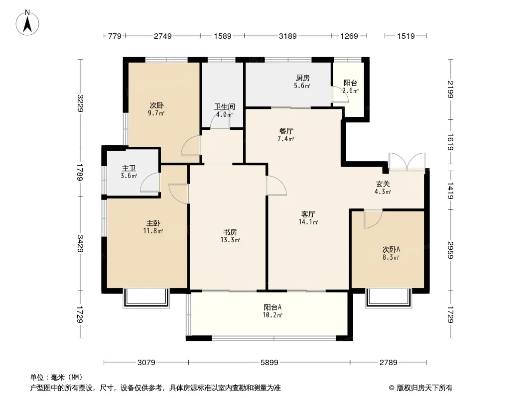户型齐全,主打南北通透,主卧带卫,带衣帽间三居