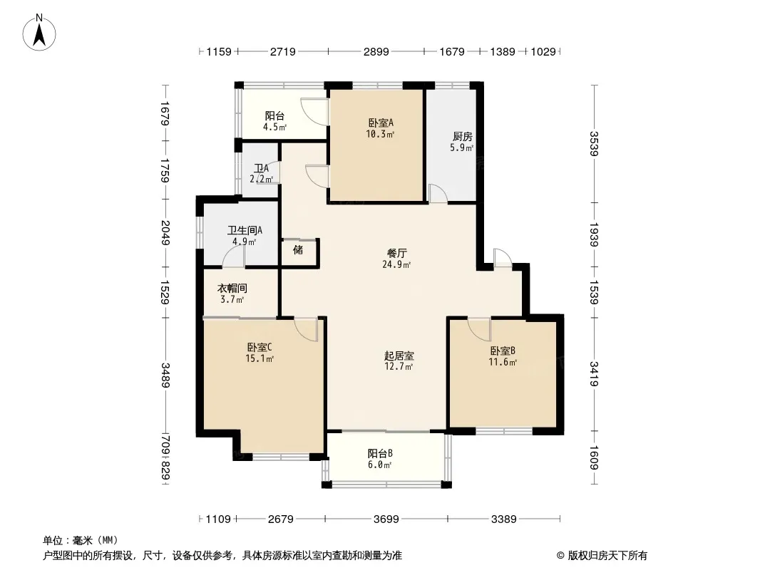 户型齐全,主打南北通透,主卧带卫,带衣帽间三居