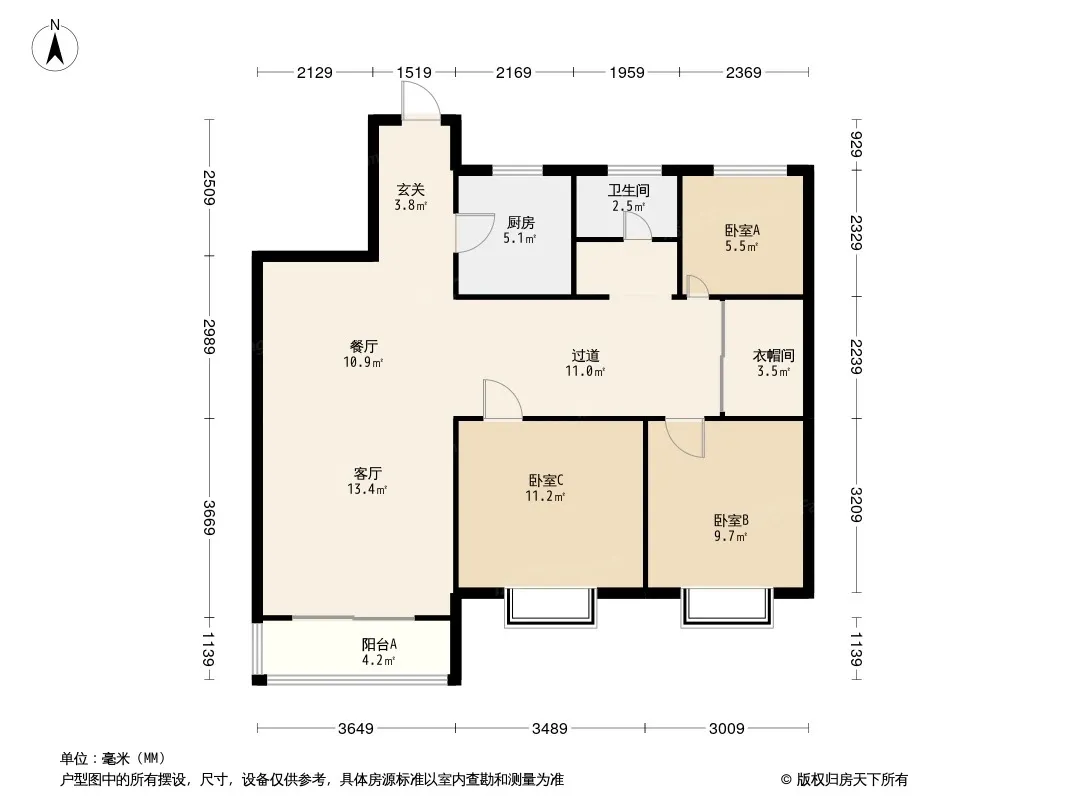 户型齐全,主打南北通透,主卧带卫,带衣帽间三居