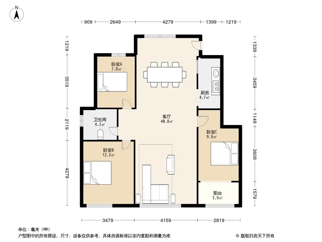 户型齐全,主打全明格局,户型方正,主卧朝南三居