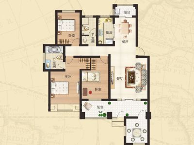 户型齐全,主打南北通透,主卧带卫,客厅朝南,主卧朝南三居