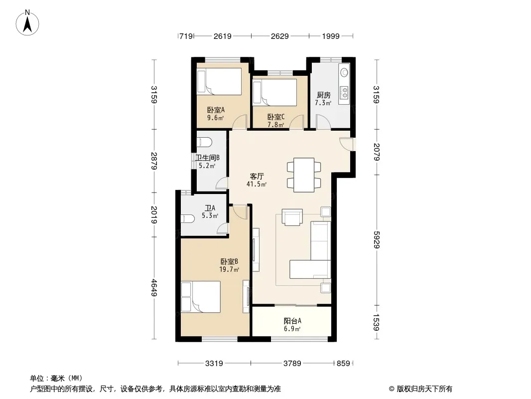 户型齐全,主打南北通透,主卧带卫,干湿分离三居