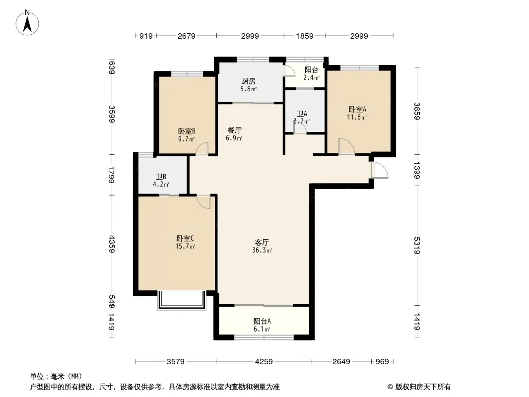 户型齐全,主打南北通透,客厅朝南,主卧朝南,观景飘窗,全明格局,双阳台三居