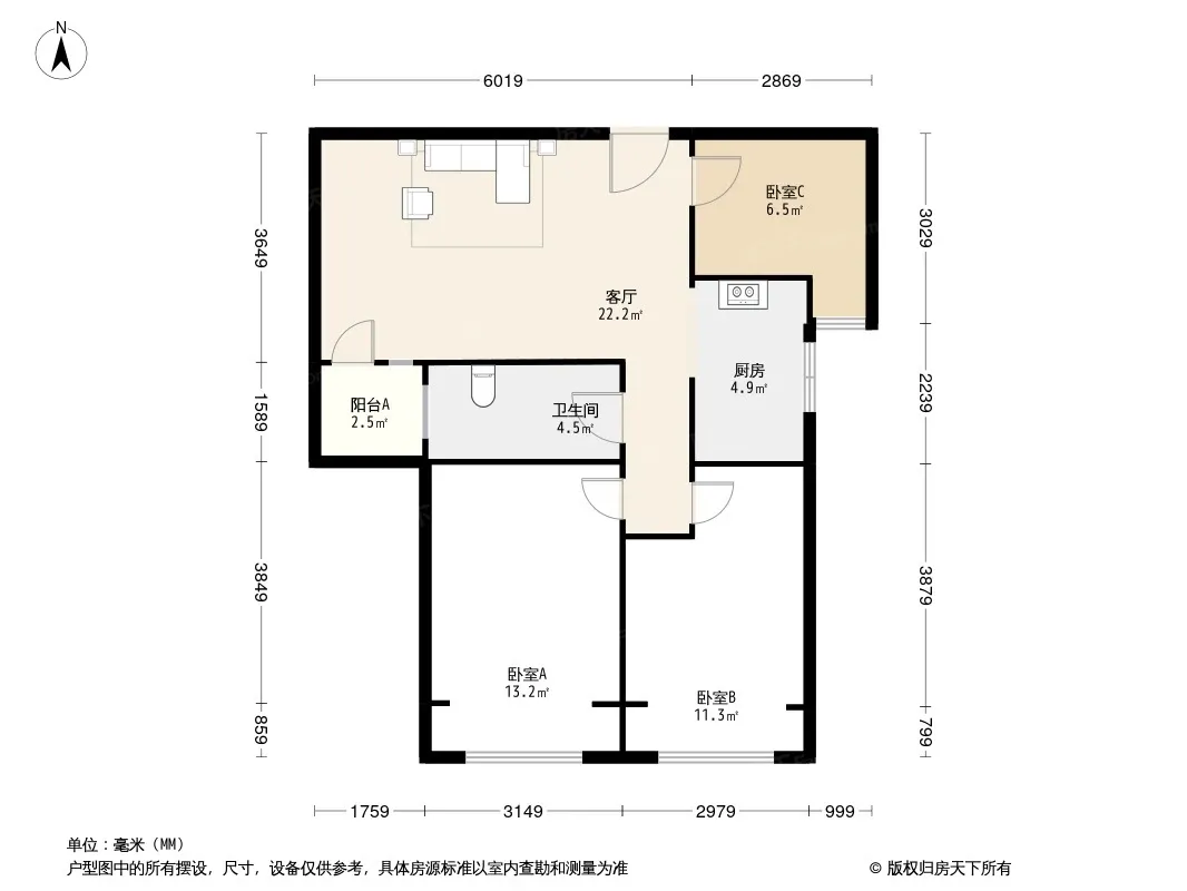户型齐全,主打南北通透,全明格局三居