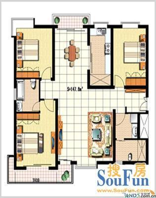 帝湖东王府 3室1厅 南