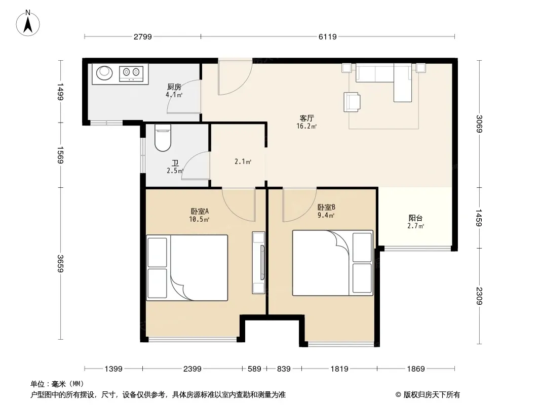 户型齐全,主打南北通透,全明格局,采光充足三居