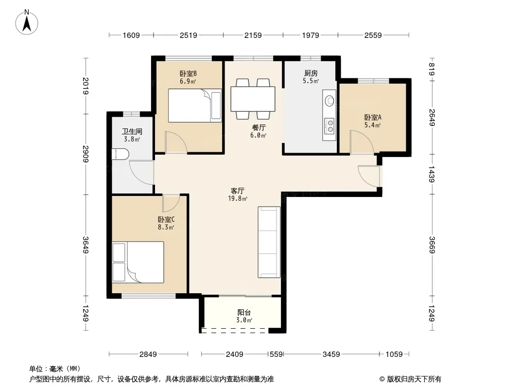 户型齐全,主打南北通透,全明格局三居