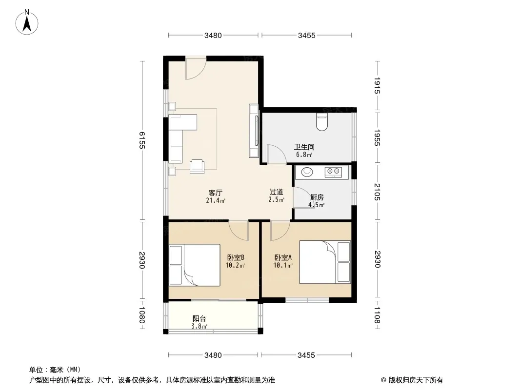 户型齐全,主打户型方正,明卫,明厨,客厅朝南,主卧朝南三居