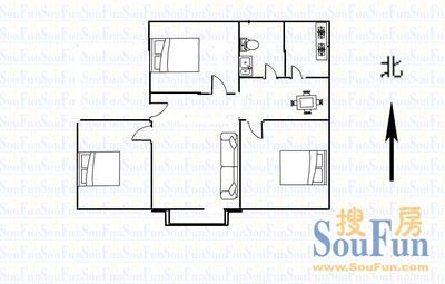 杜岭街1号3室1厅南北