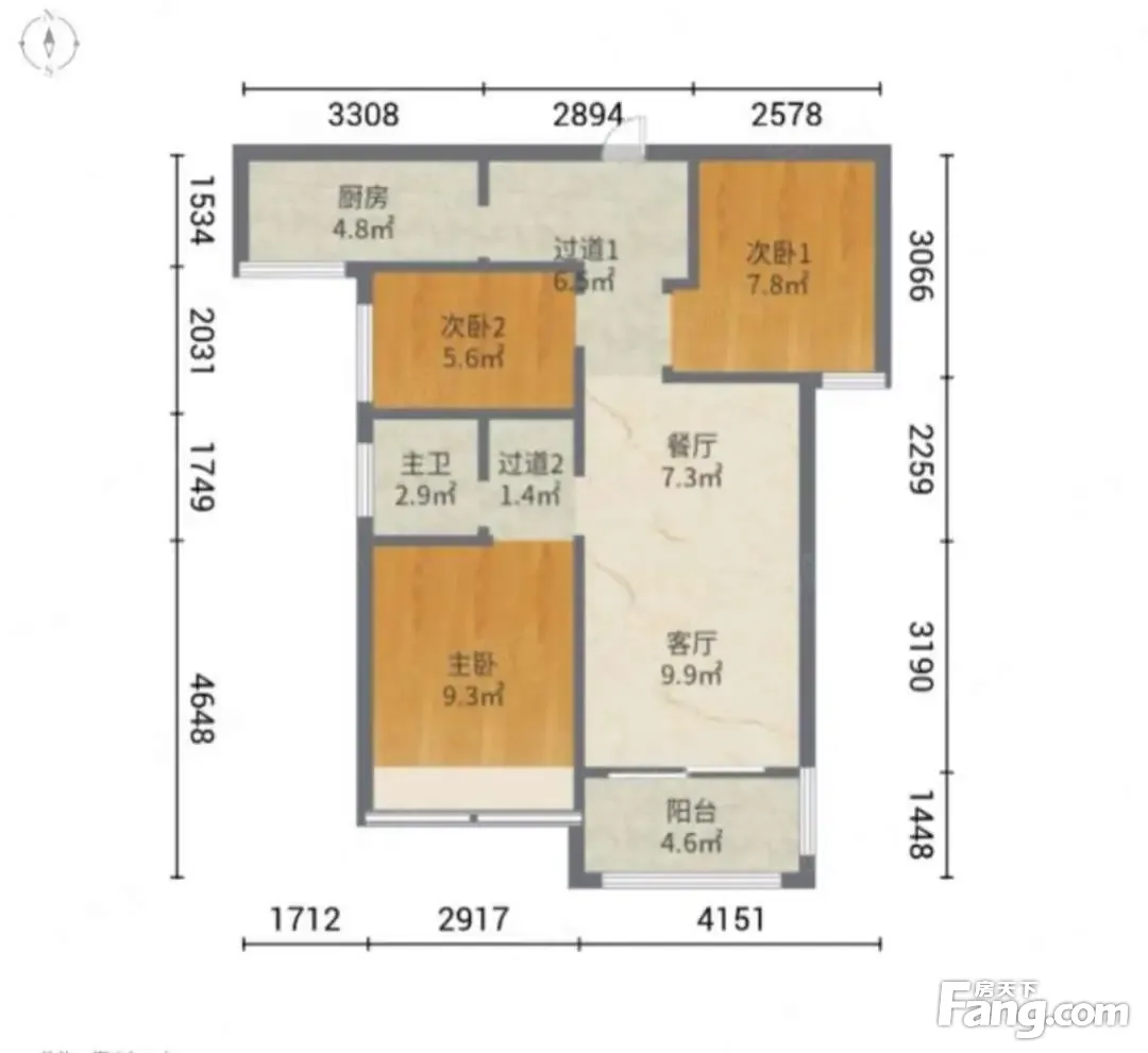 户型齐全,主打客厅朝南,卧室朝南,干湿分离三居
