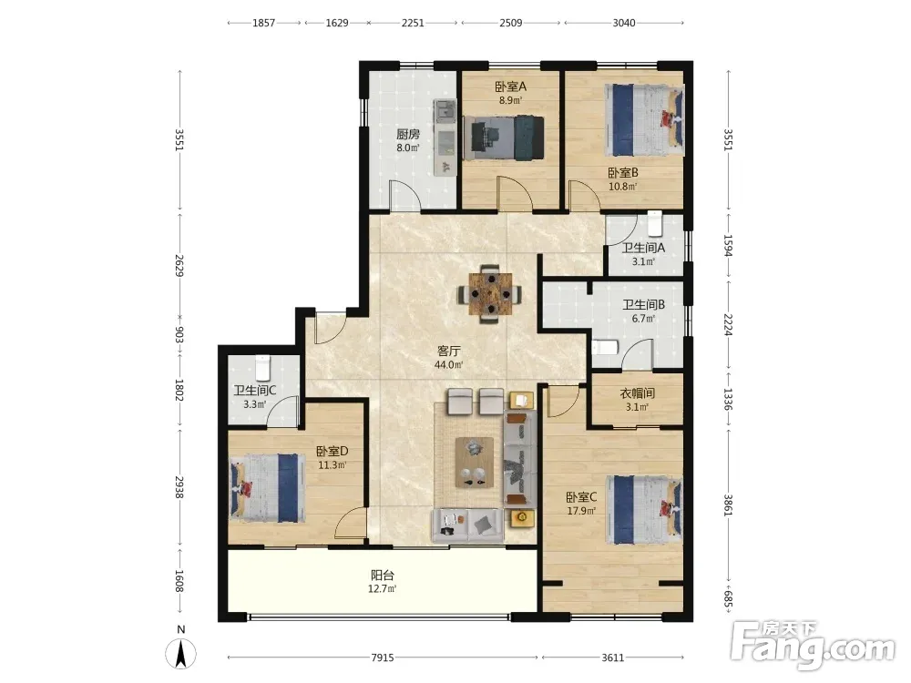 亚新茉莉公馆 4室2厅 南 北