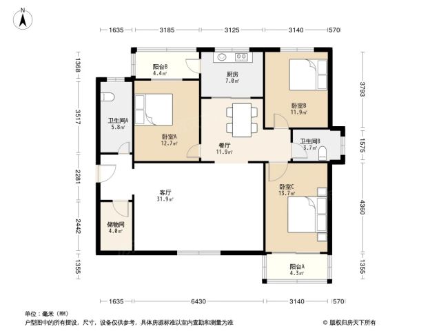 建筑面积:131.28㎡;
