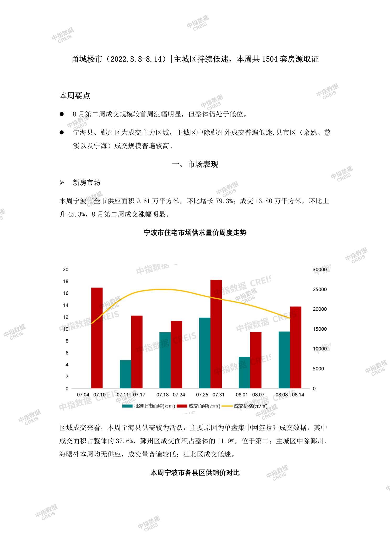 甬城楼市(2022.8.8-8.14)|主城区持续低迷,本周共1504套房源取证