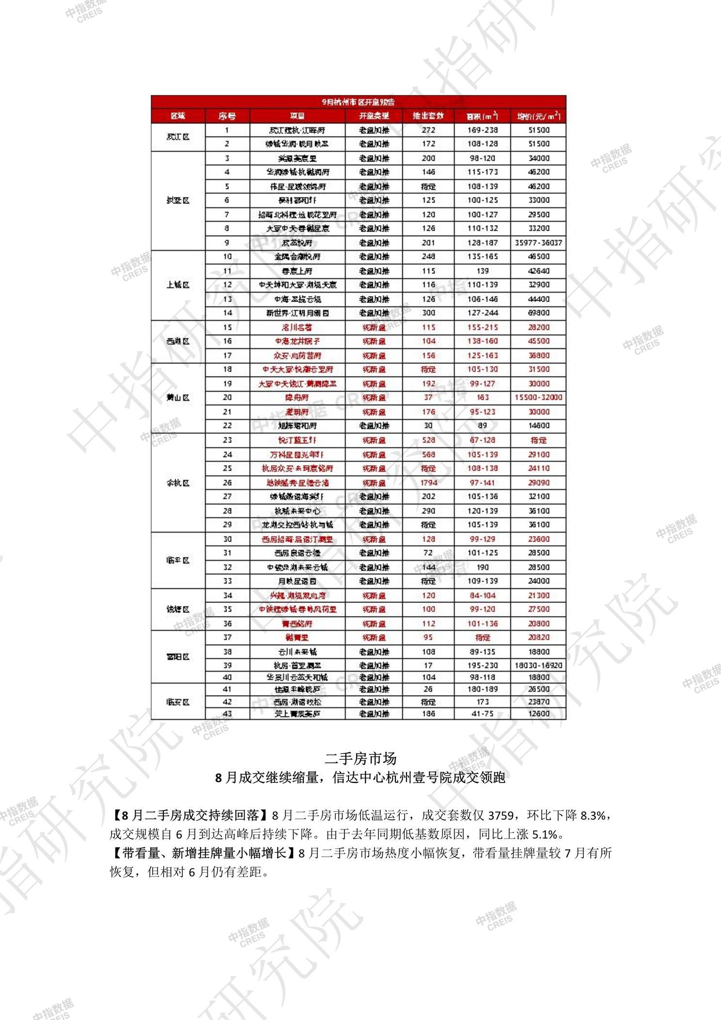 8月杭州楼市简报|新房成交再度缩水,市场冷热分化加剧
