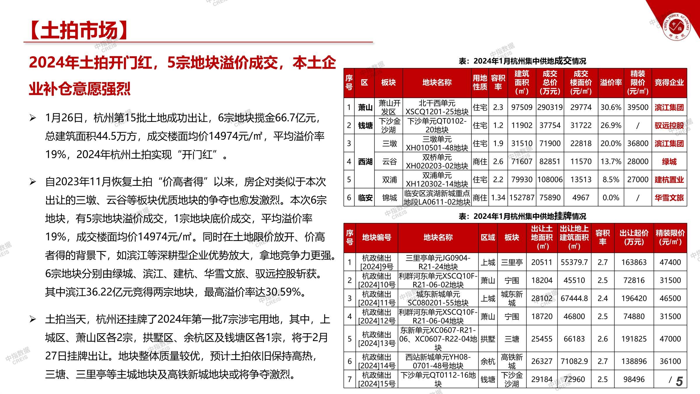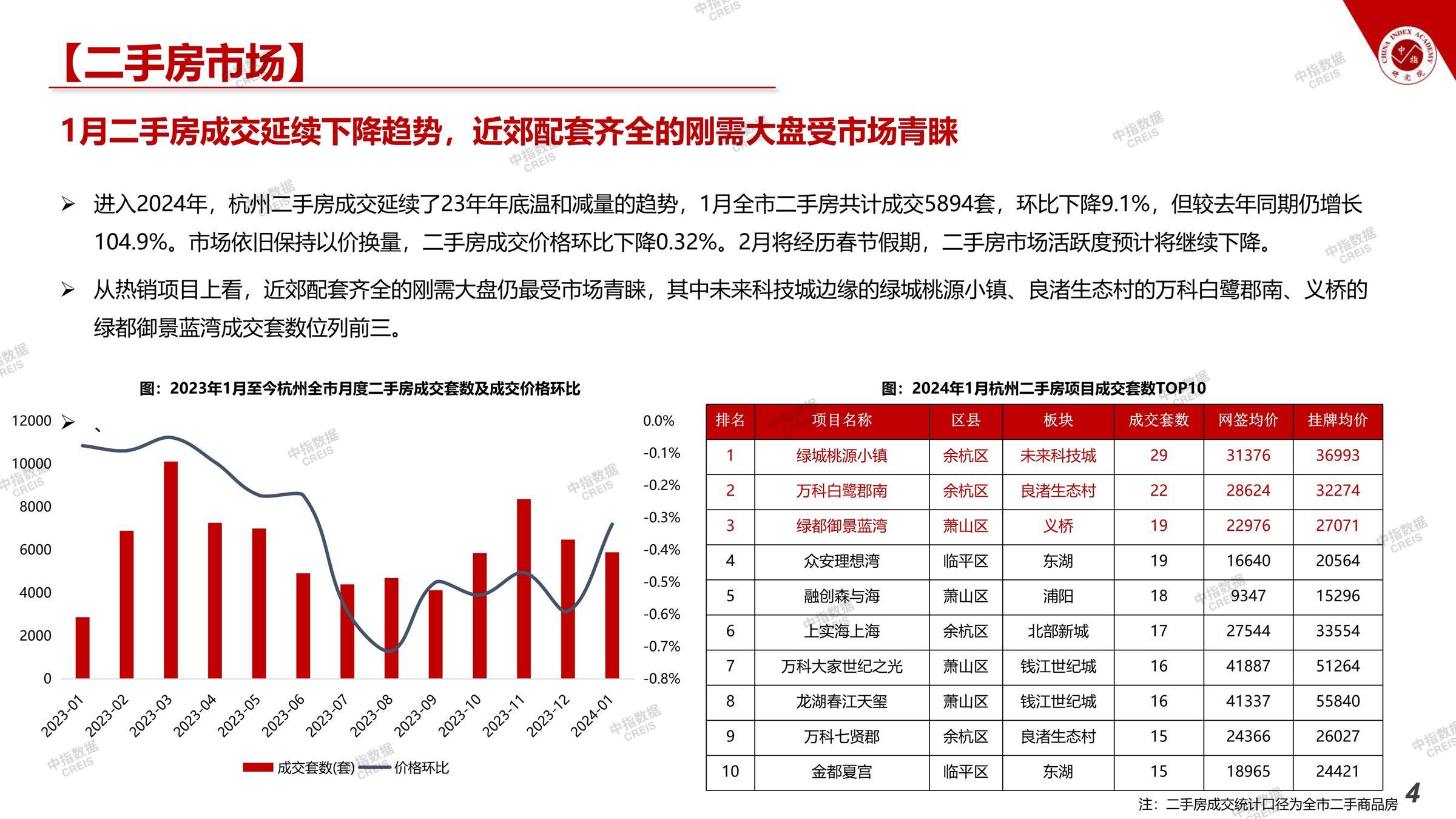 2024年1月杭州楼市简报 - 简版
