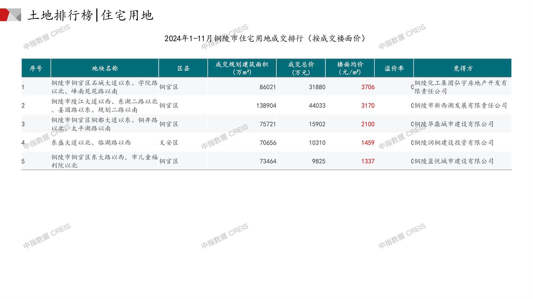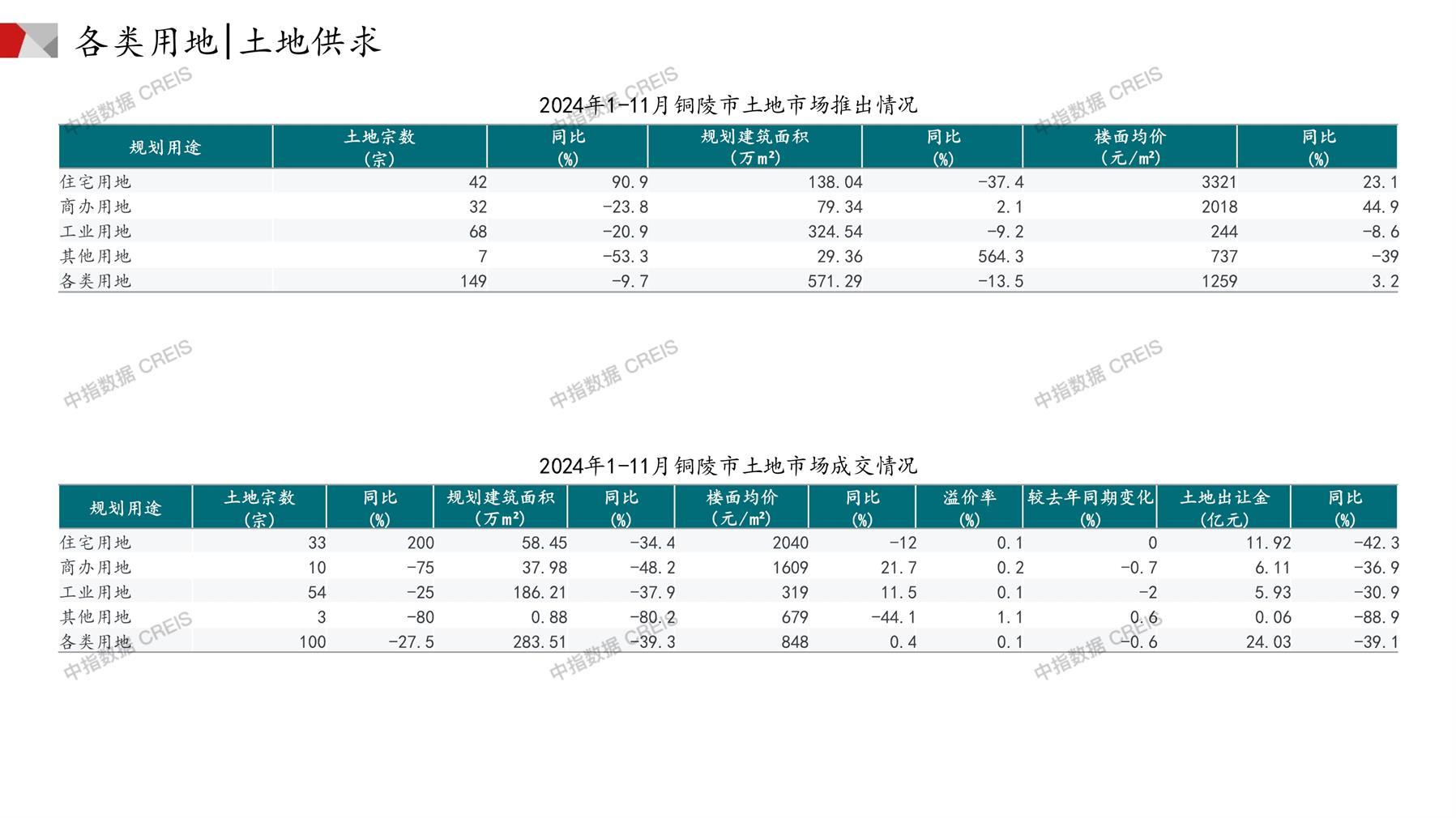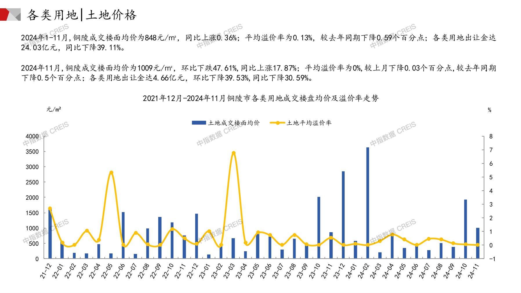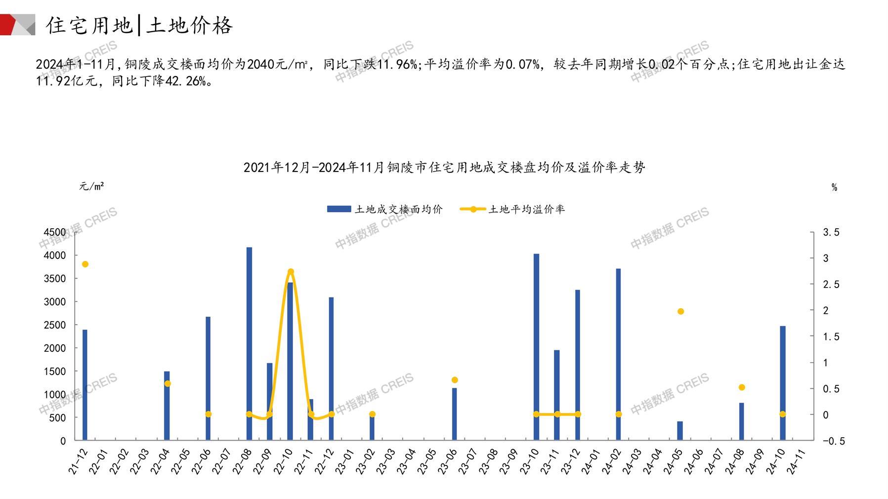 铜陵土地市场月报2024年11月