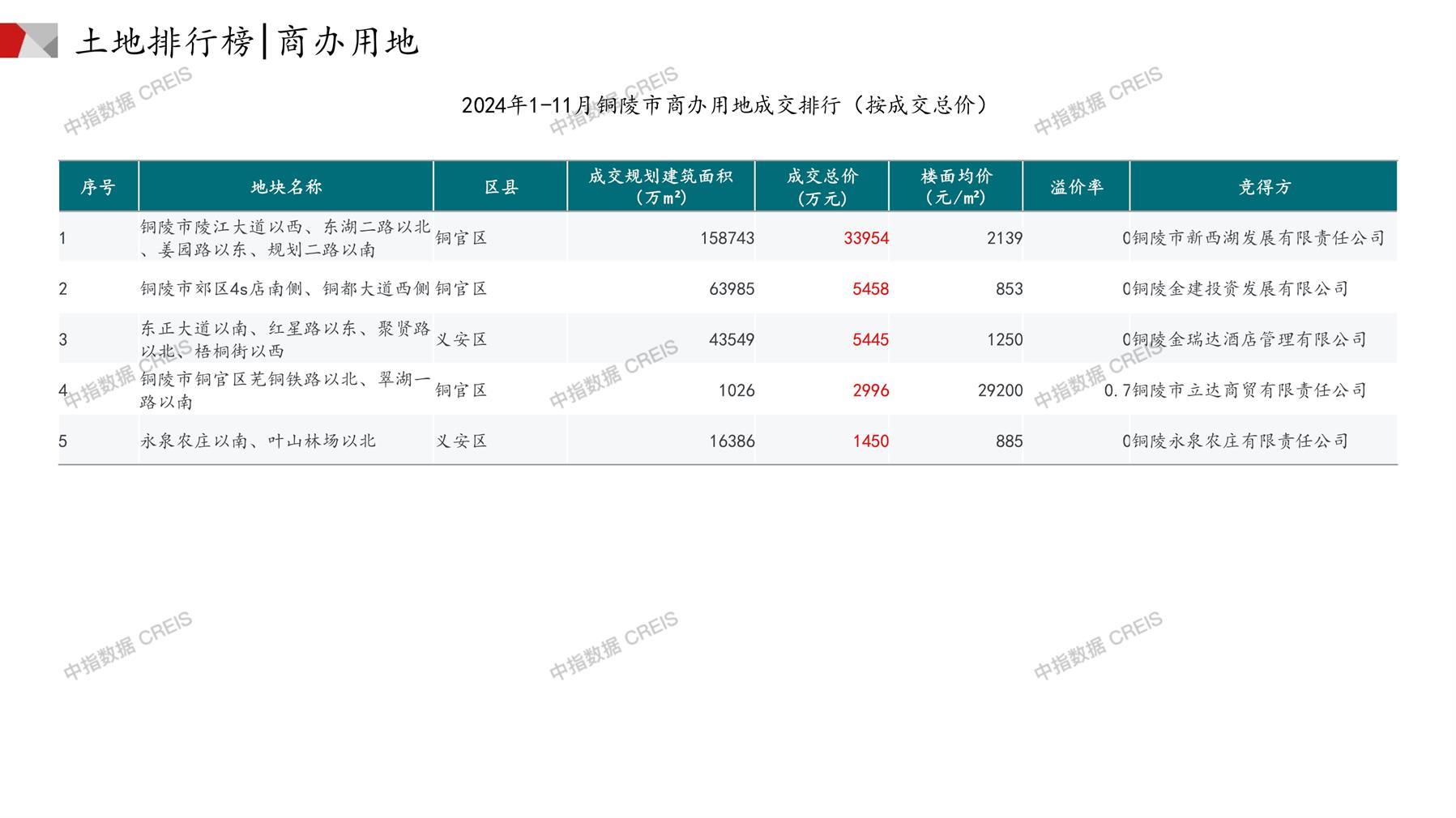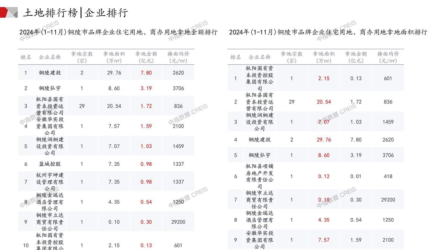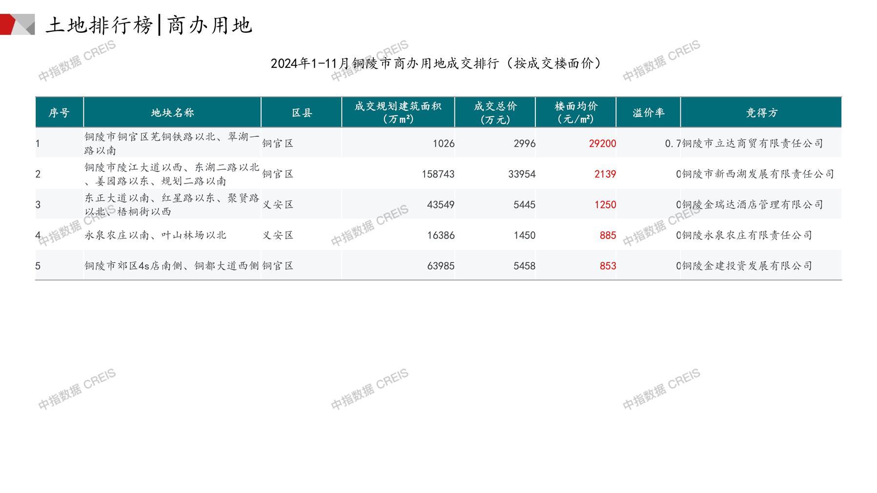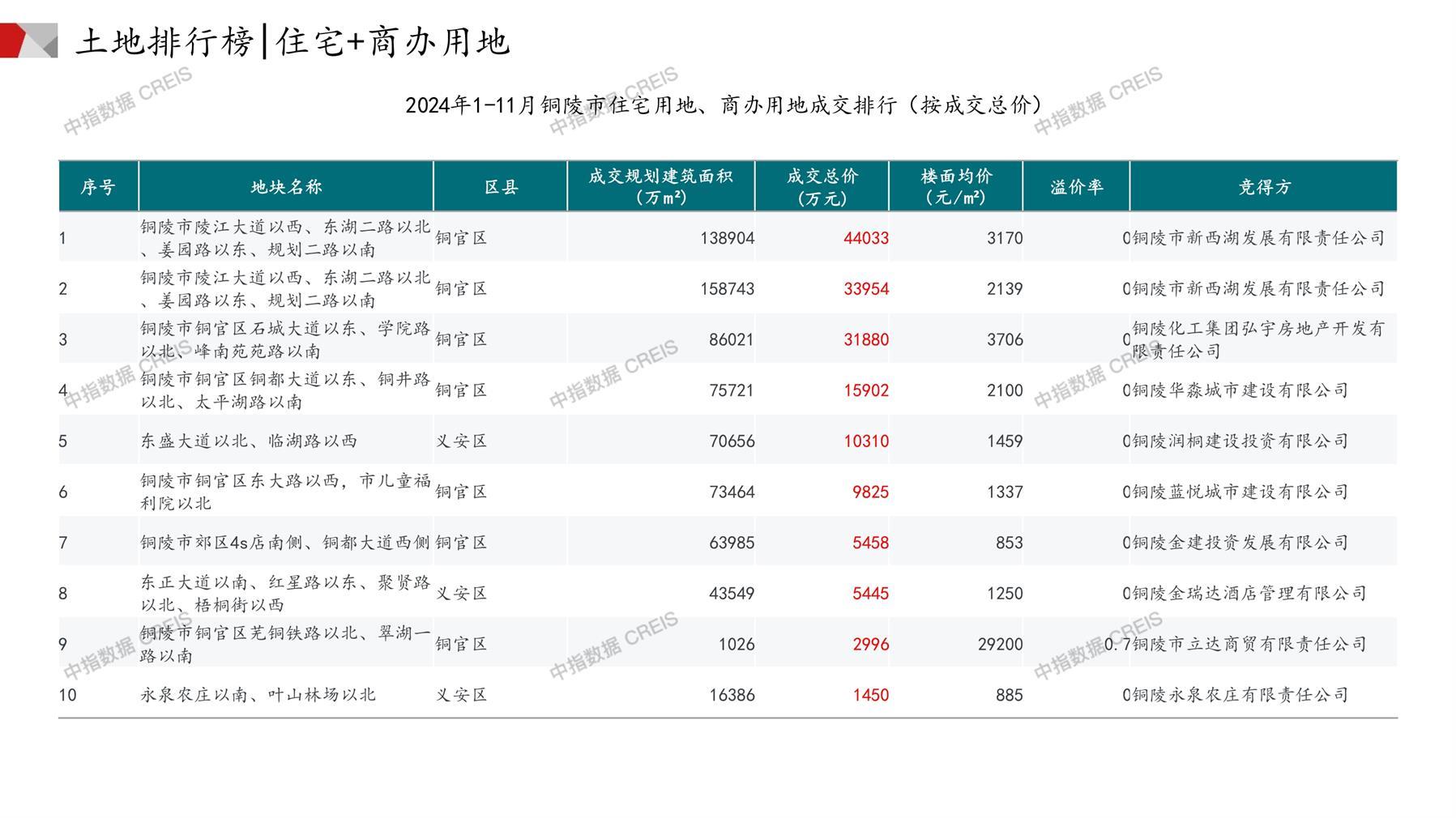 铜陵土地市场月报2024年11月