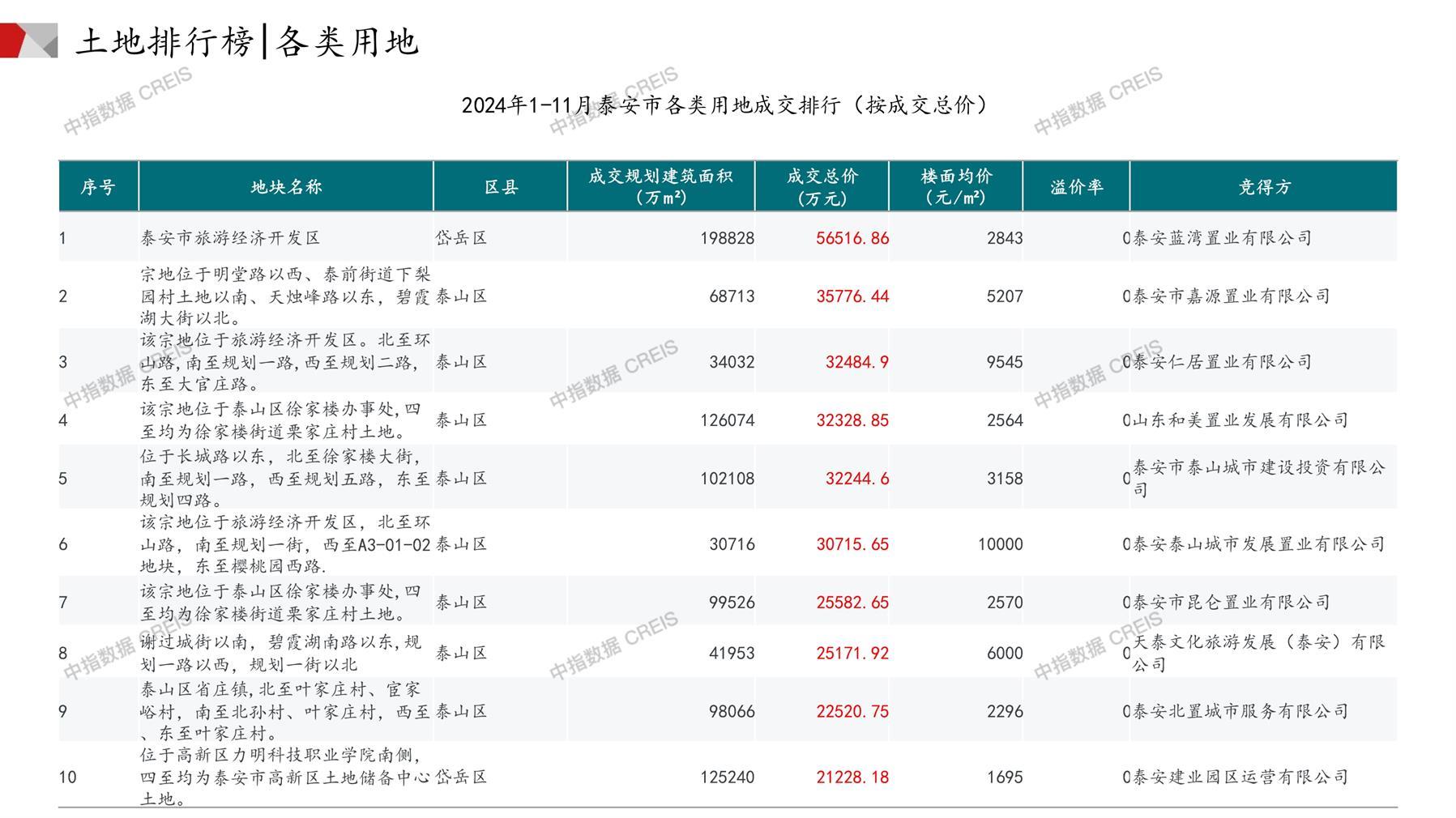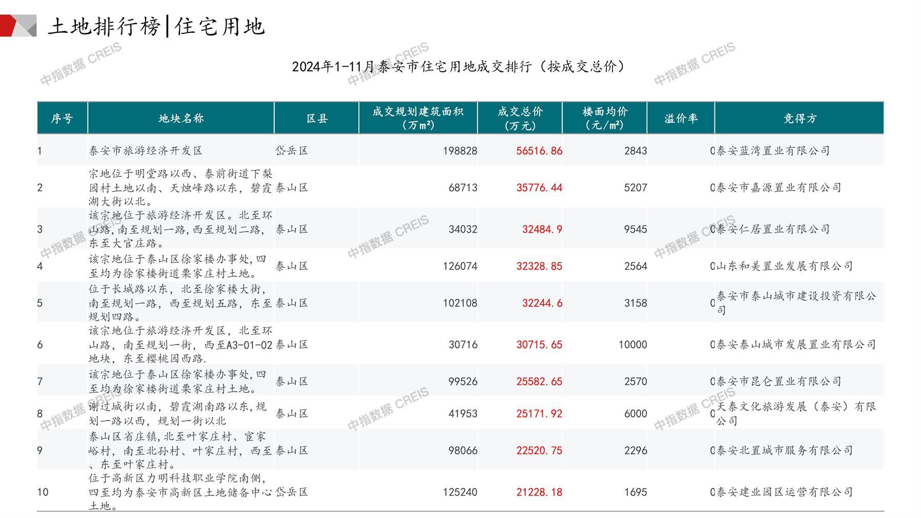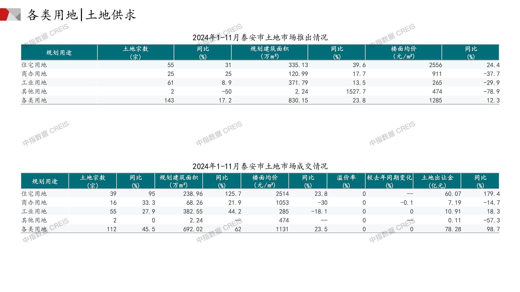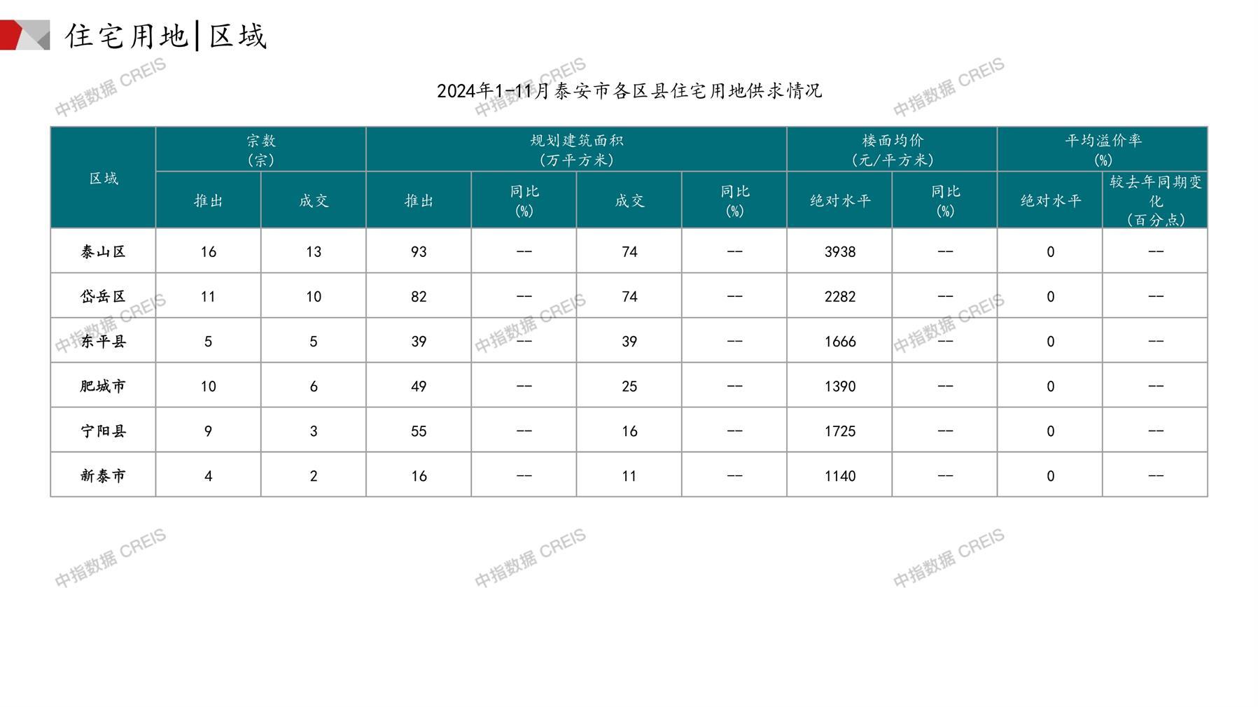 泰安土地市场月报2024年11月
