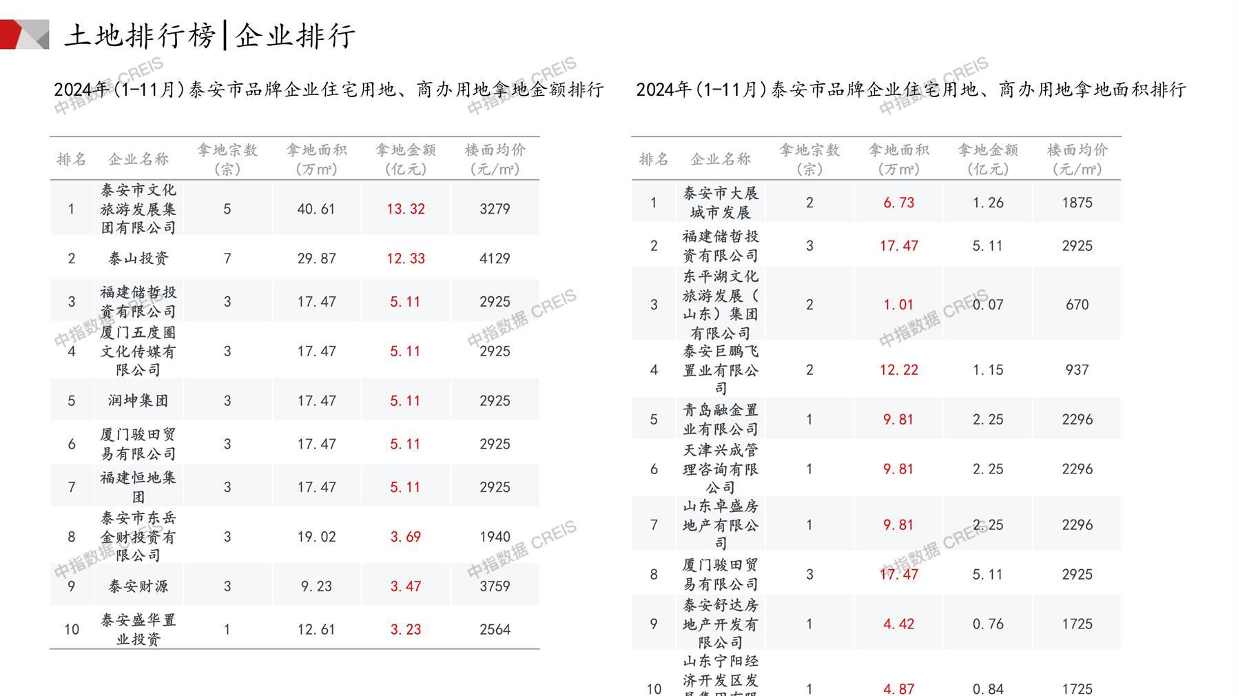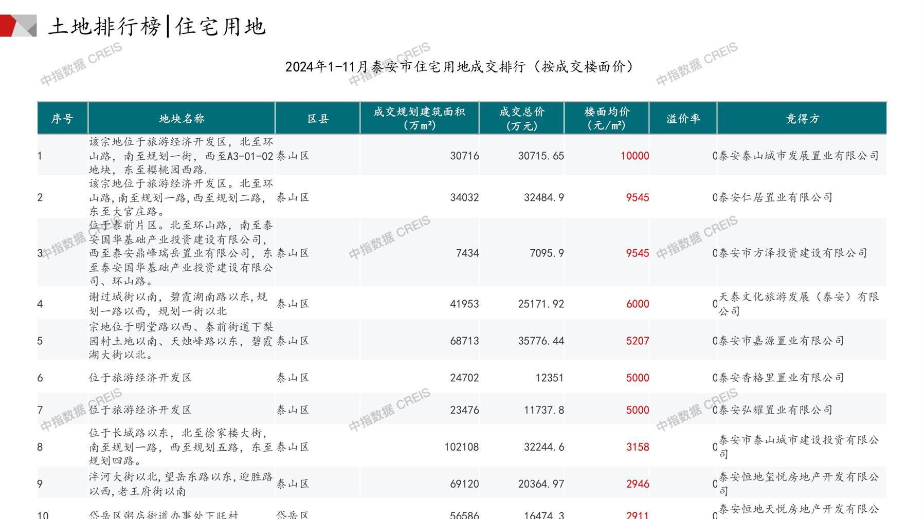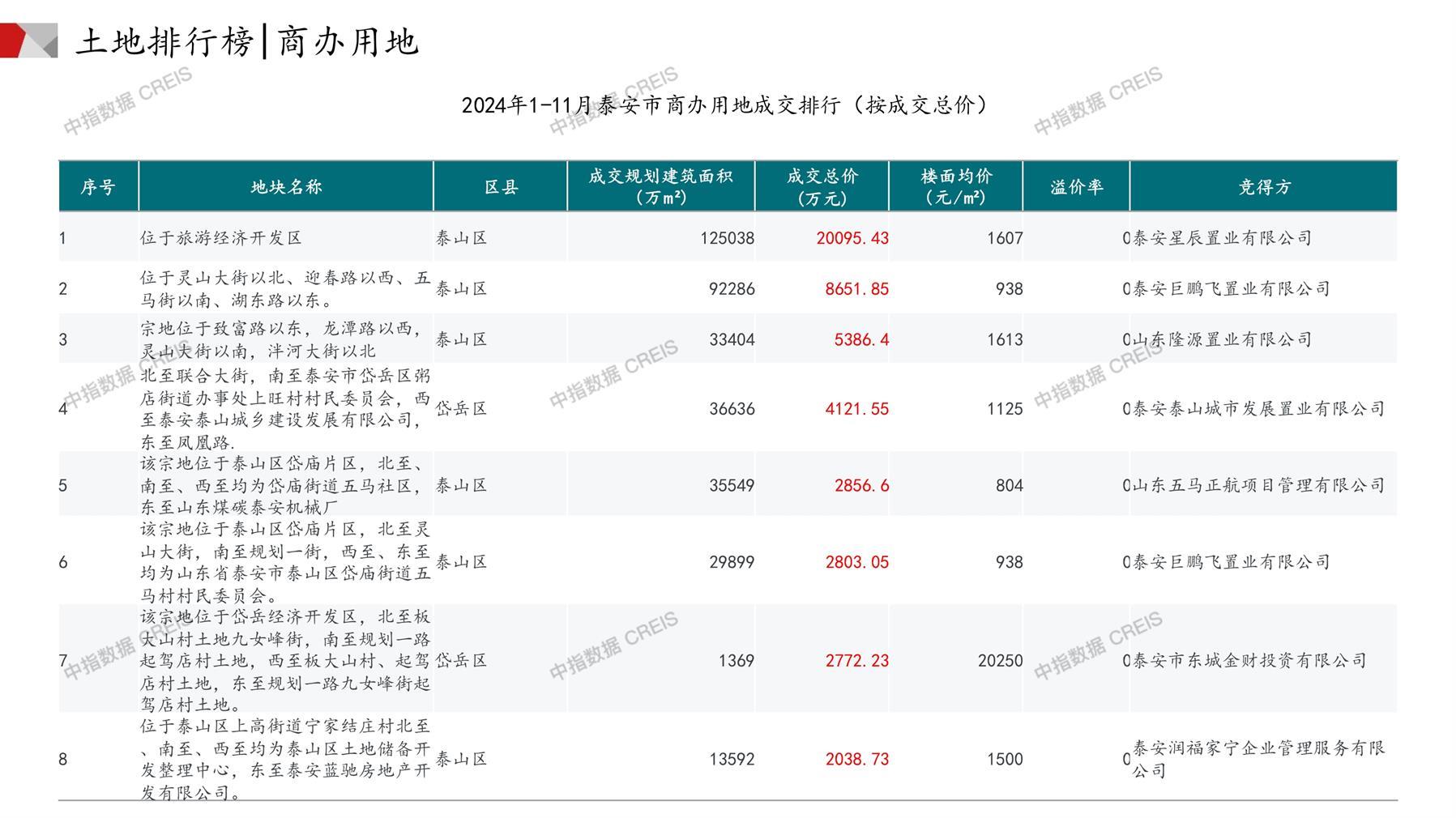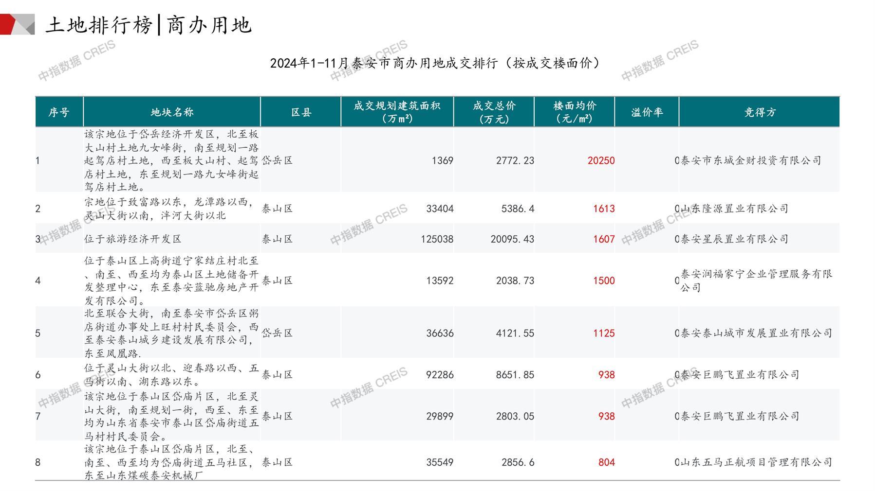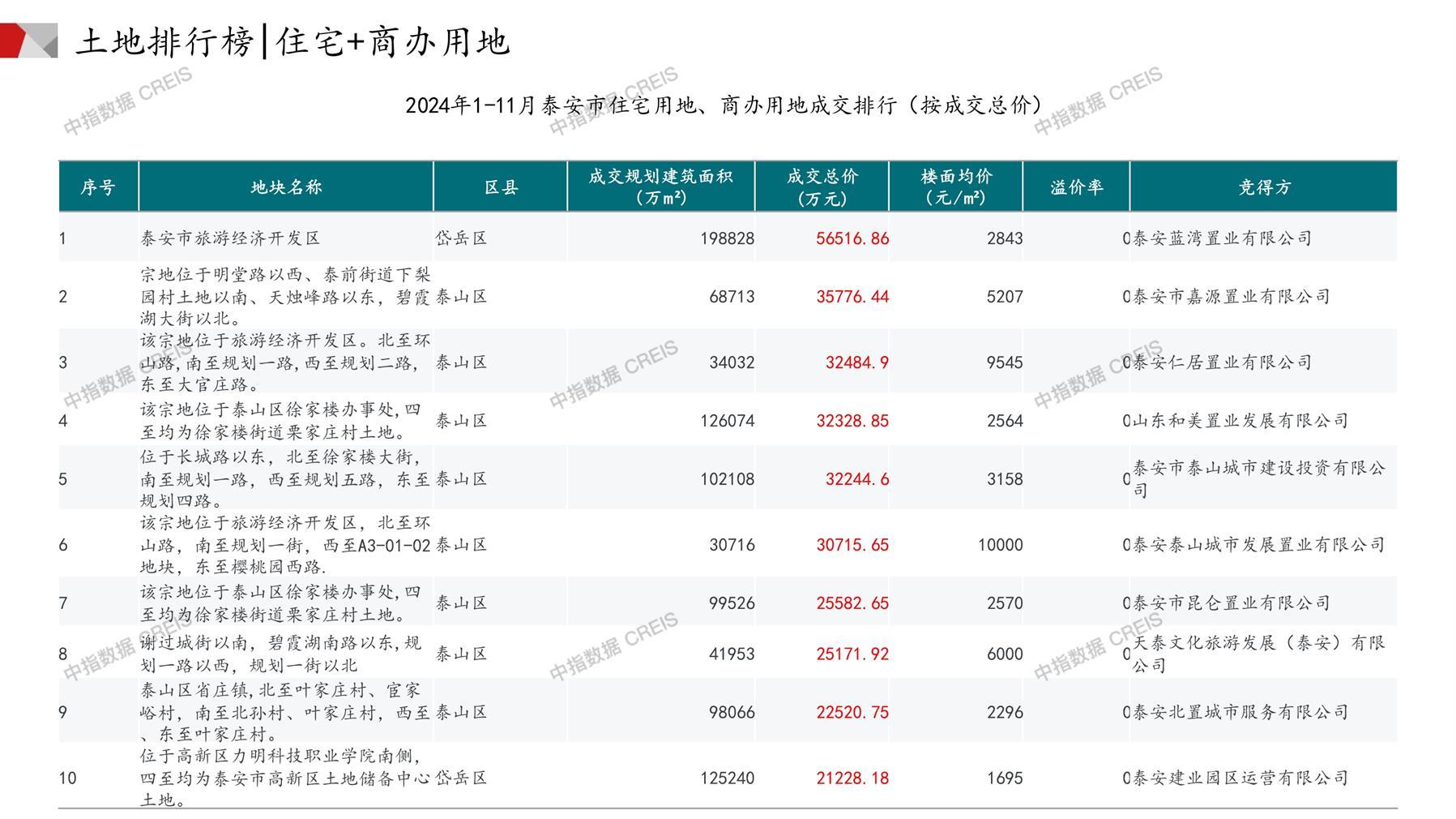 泰安土地市场月报2024年11月