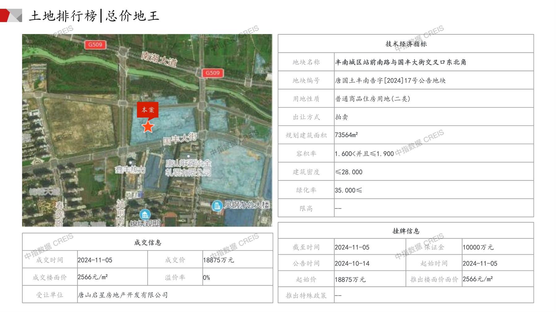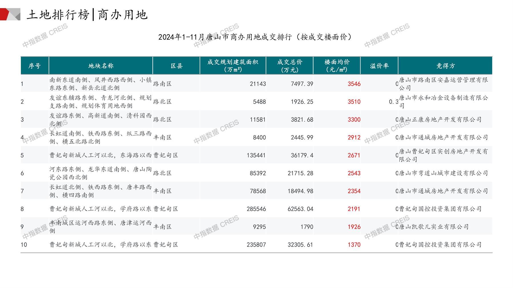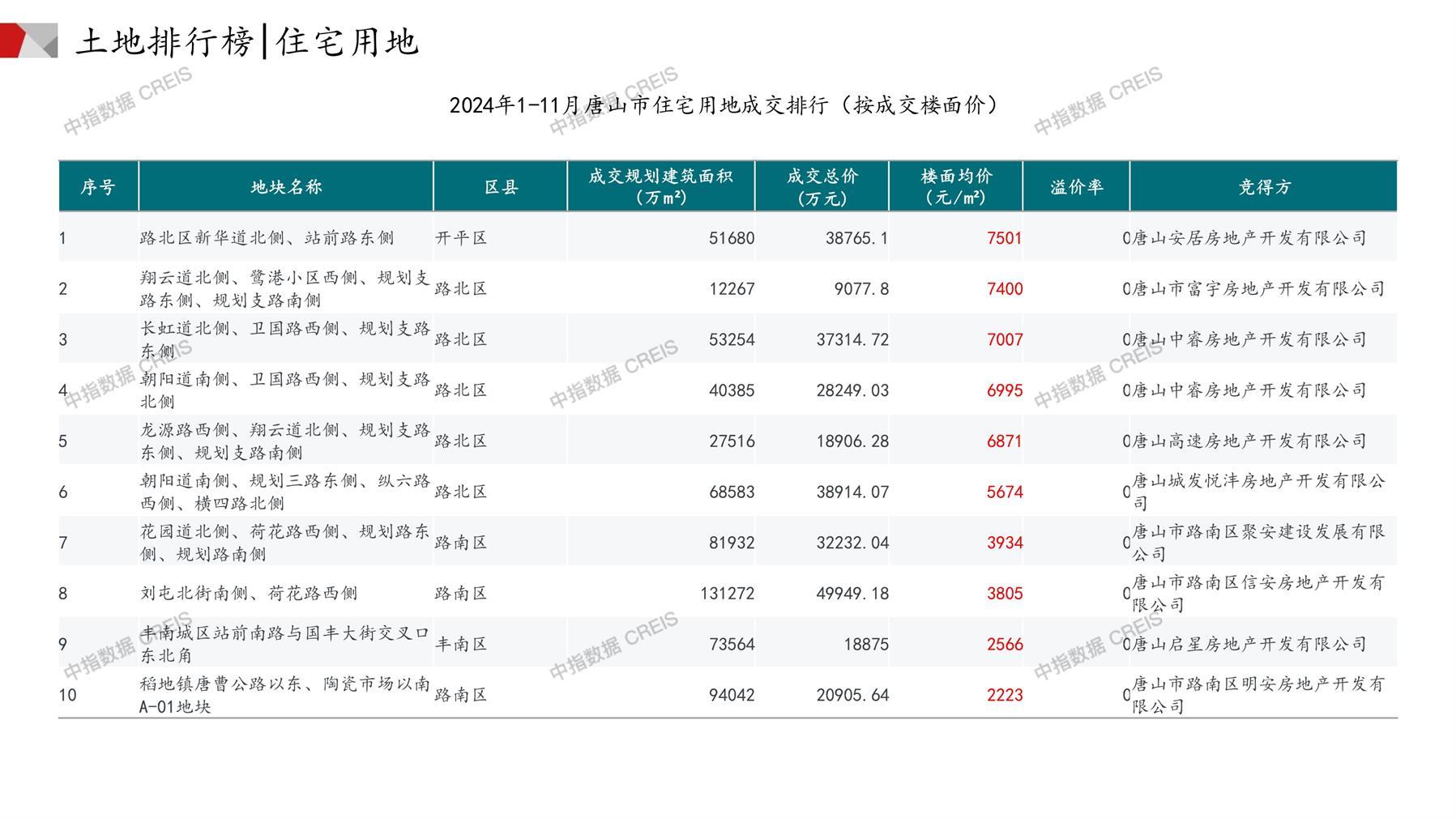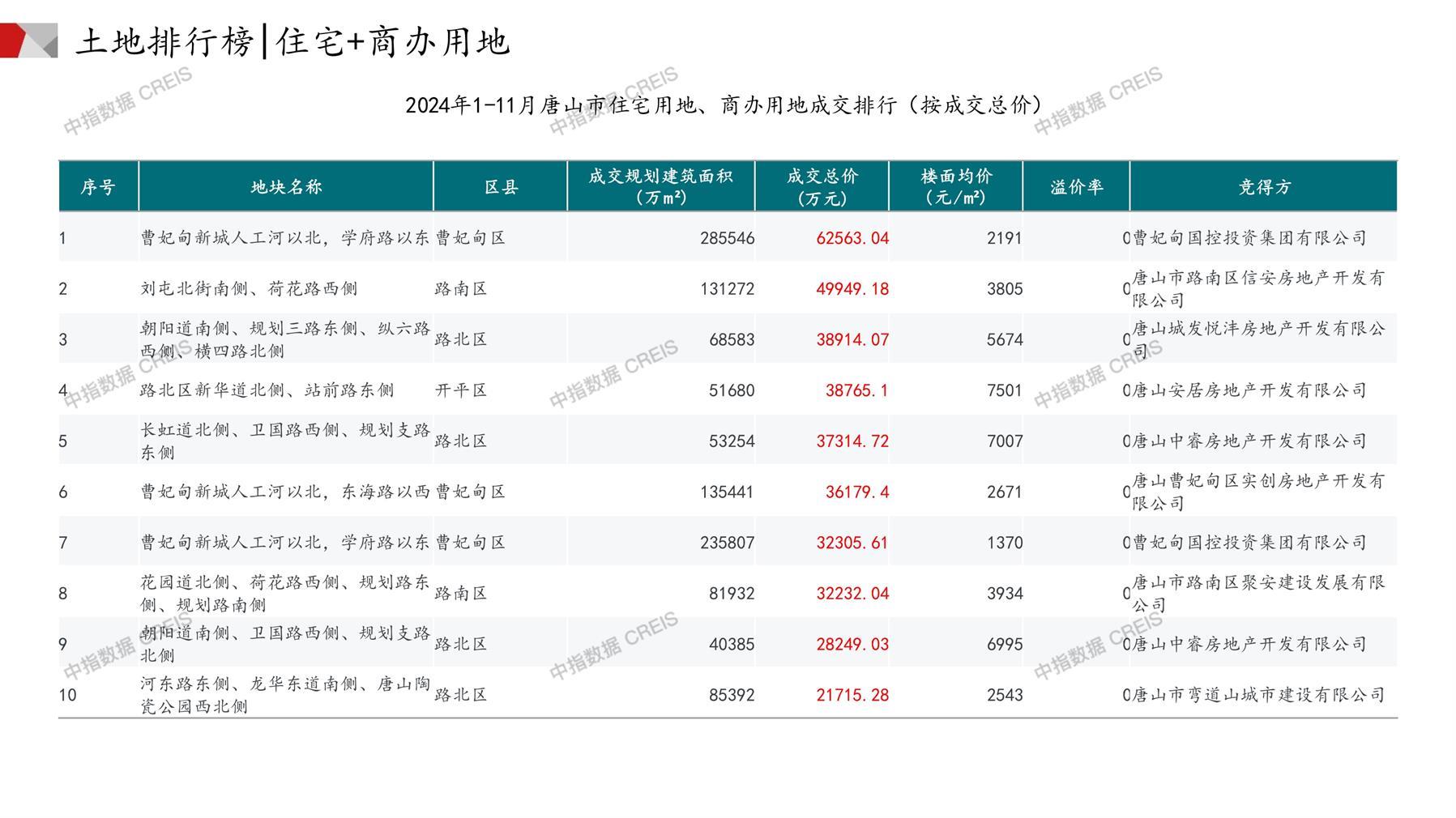 唐山土地市场月报2024年11月
