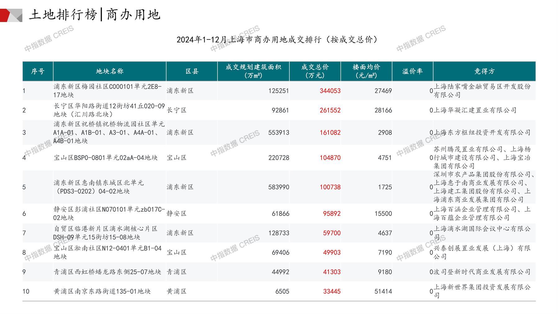 上海土地市场月报2024年12月
