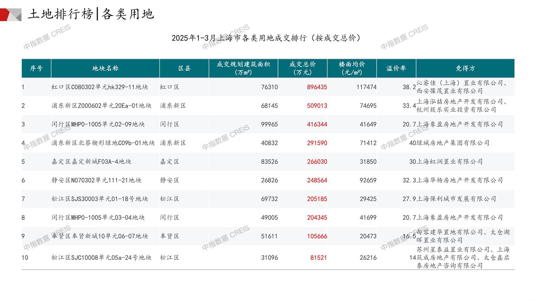 上海土地市场月报2025年03月